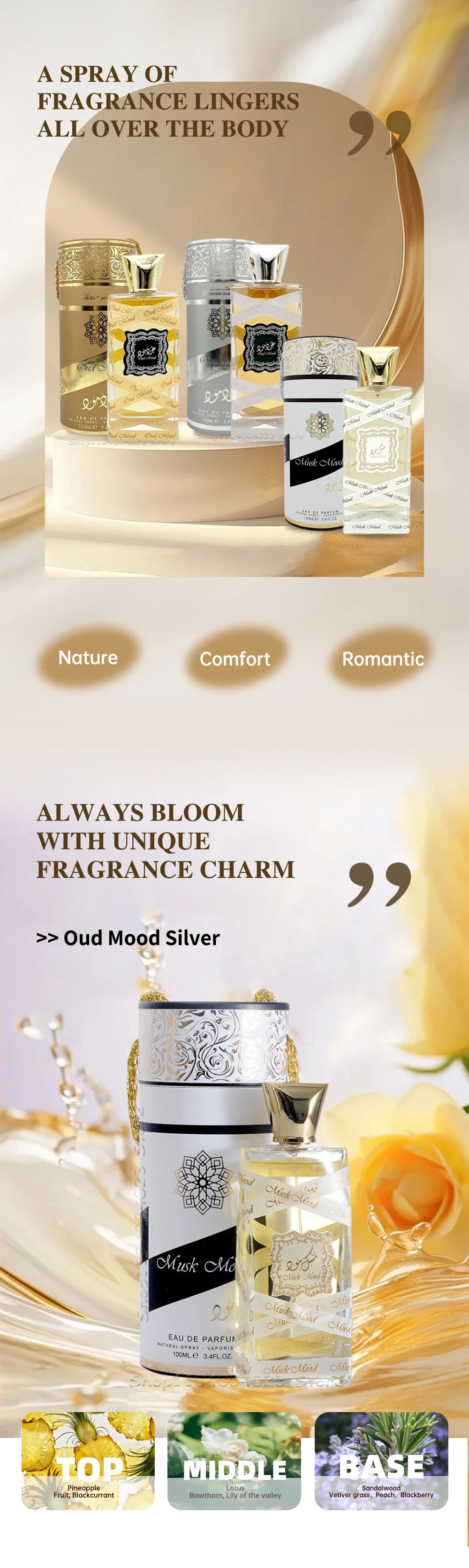 Middle notes: White Musk, Floral Notes and Vanilla