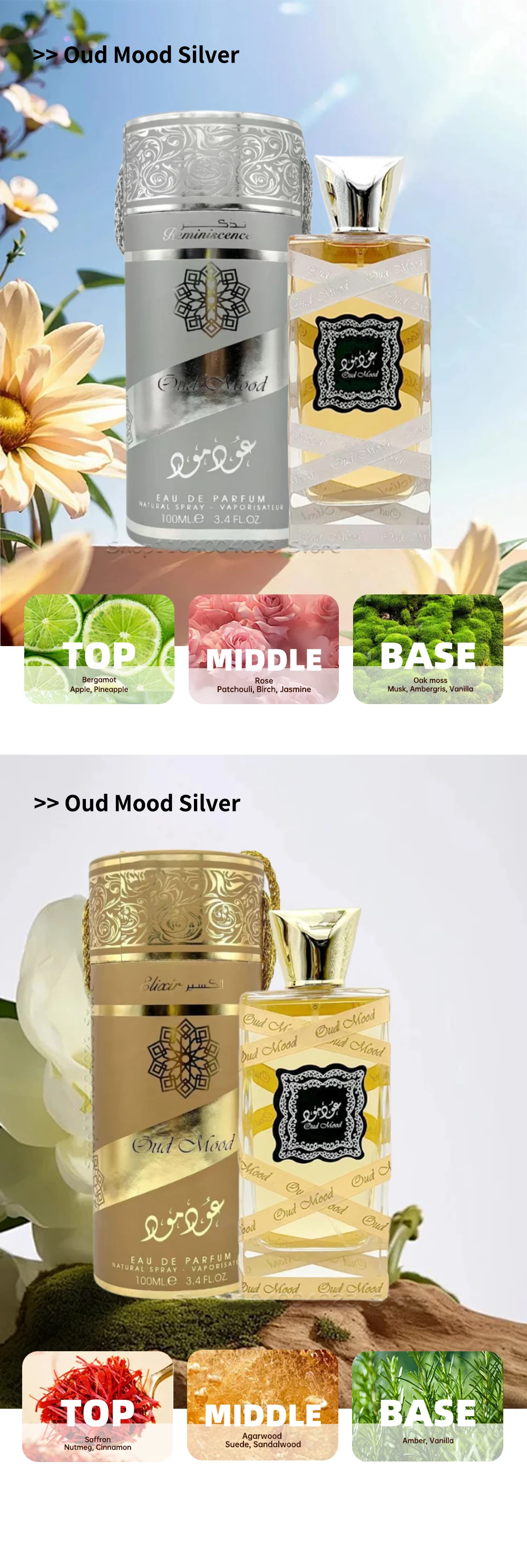 Oud Mood Elixir is a warm, oriental fragrance with floral, woody and spicy notes
